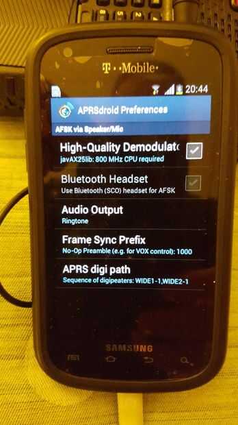 Lo que estaba sucediendo... bien cuando APRSDroid transmitiría, veía la transmisión de mi radio pero no lo veo regresar del relais o golpear la puerta. Resulta que la configuración predeterminada en APRSDroid es enviar la señal en el teléfono/voz' del teléfono. Esta señal fue muy débil que no pude conseguir el relé a recogerla cuando condujo más allá de ella.