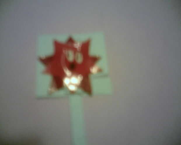 La varita es una tira larga delgada de cartón, un poco más grande y luego en la parte superior de la pista en la parte inferior es (por lo que sobresale un poco). En la parte superior de la varilla de doblé una pequeña cartulina delgada para darle profundidad. Si desea hacerla más resistente, puede utilizar un palito.