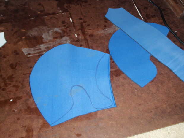 Neopreno es un poco difícil de cortar, es necesario tener un par bastante afilado de tijeras. Sugiero a partir de la pieza larga flaca primero para conseguir un bloqueo de la misma antes de tener que hacer un montón de curvas en las piezas laterales.