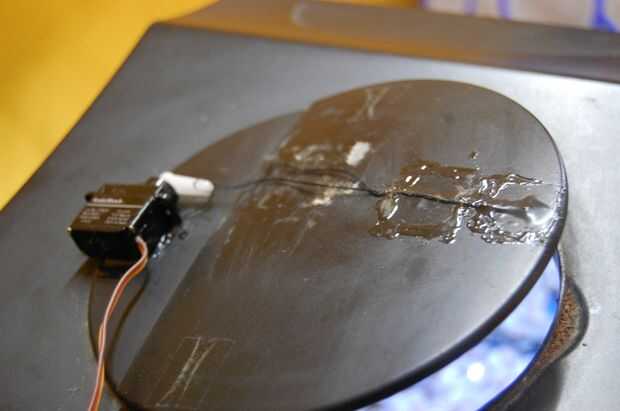 Póngale un trozo fuerte de cadena en el Micro Servo Motor y arreglar justo detrás de la bisagra de la tapa (como se muestra arriba). He utilizado pegamento parte 2 super fuerte cual es manera más limpio que doubletape desagradable. Después de que el pegamento se seque, pegue el otro extremo de la cuerda a la tapa (ver imagen 1) con una combinación de cinta aislante y pegamento super fuerte (véase cuadro 3).