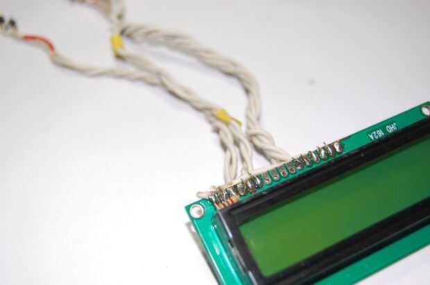 Simplemente conecté un manojo de cables de puente a los pines necesarios de la pantalla LCD. En los otros extremos de los cables que soldado en hacer cabeceras (ver foto arriba) por lo que fácilmente se conectan a los encabezados en el tablero de arranque de Edison). Nota: Marque cual cable es cual para evitar confusiones más tarde!