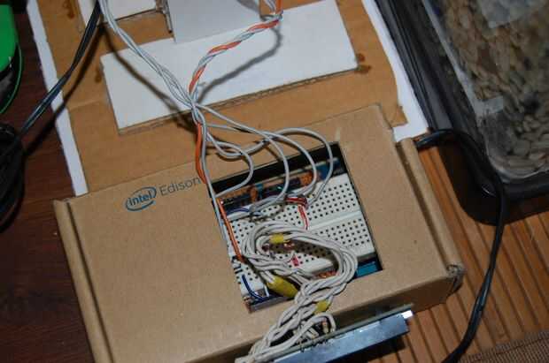 Es el momento de mover el soporte de AquaFeeder para el acuario! Tuve que prolongar los cables del servo para que llegara al Edison que fue colocada en la base del soporte.