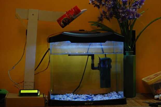 Después de la Edison se enciende y la pantalla LCD muestra la hora/IP (es decir su en la secuencia de bucle principal), conecte a la Página Web de Edison (ver paso 17). Haga clic en el enlace de la alimentación ahora . Después de unos momentos, usted debe aquí unos pitidos y algunos mensajes en el puerto serie que indican que AquaFeeder va a empezar a alimentar a los peces.