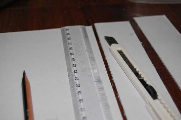 - Corte 2 pedazos de mountboard aproximadamente 1.5 pulgadas de ancho y 3 pulgadas más largo thn la altura de su acuario.
