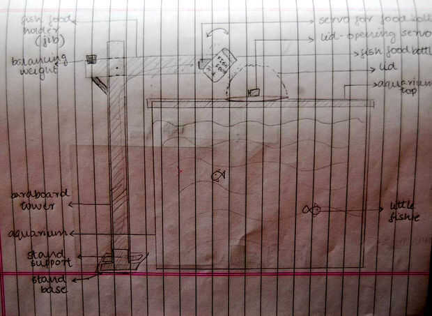 Recomiendo primero dibujo más o menos un plan de un soporte de alimentador de peces igual (en la foto arriba) y luego comenzar con el siguiente paso...