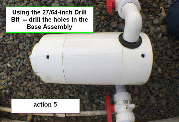 Broca de uso 27/64 de pulgada, taladre los orificios en el conjunto de la Base. Acción terminada se verá como se muestra en la acción foto - 5 arriba.