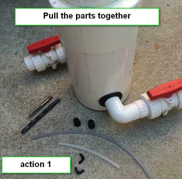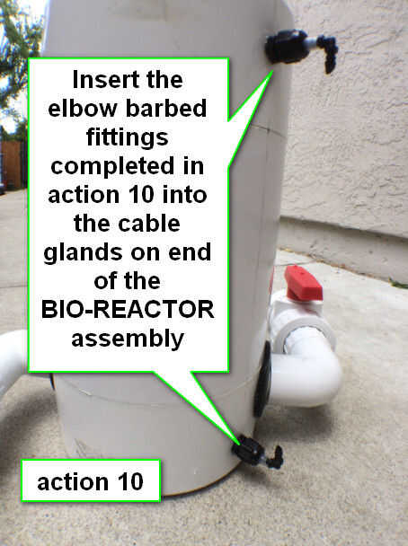 Insertar las conexiones de codo de púas en las glándulas de cable en el extremo del conjunto del BIO-REACTOR de acción 10. Como se muestra en acción foto - 10 anterior.