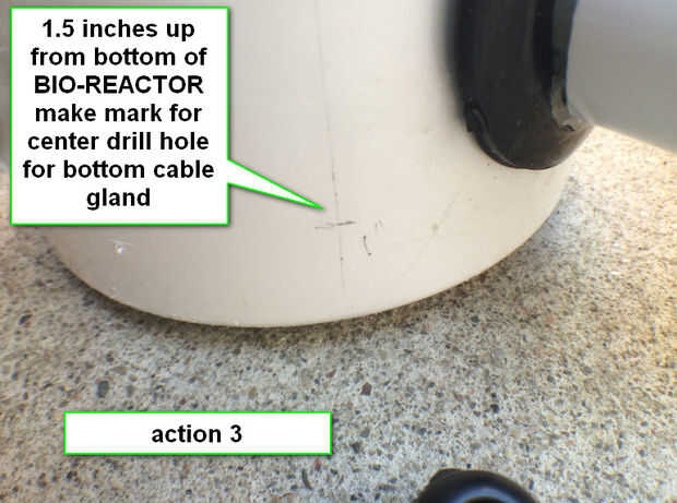 1.5 pulgadas para arriba de la parte inferior del BIO-REACTOR marque para el agujero de taladro de centro para la glándula de cable inferior