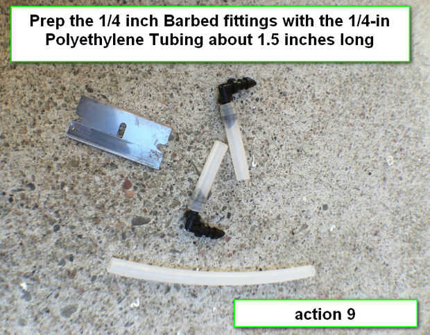 Preparar las guarniciones de púas de 1/4 de pulgada con el 1/4 tubería de polietileno de 1,5 pulgadas de largo. Como se muestra en acción Foto - 9 arriba.
