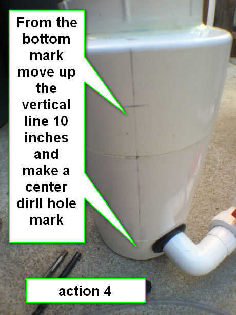 Desde la marca inferior subir la línea vertical 10 pulgadas y marque un agujero de dirll centro. Como se muestra en acción foto - 4 arriba.