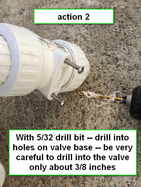 Con broca de 5/32, perfore agujeros en la base de la válvula.