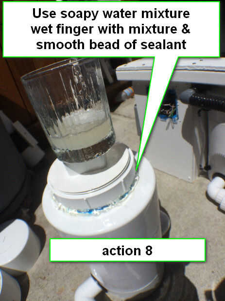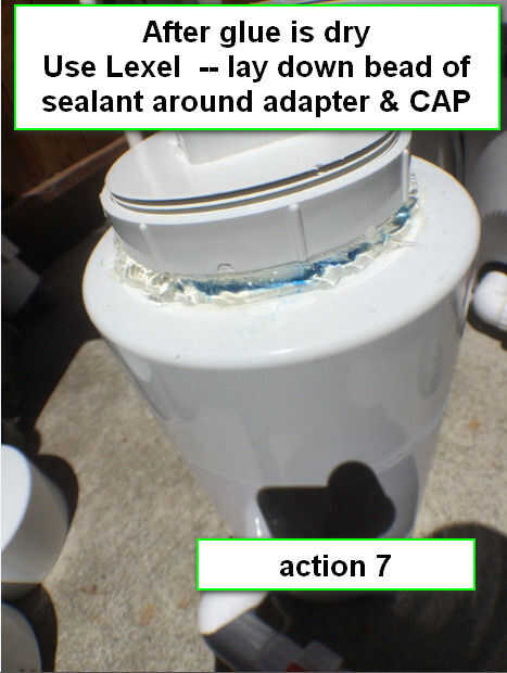 Después de seco - pegamento establecer un cordón de sellador en el adaptador donde está pegado a la tapa. Como se muestra en acción foto - 7 arriba.