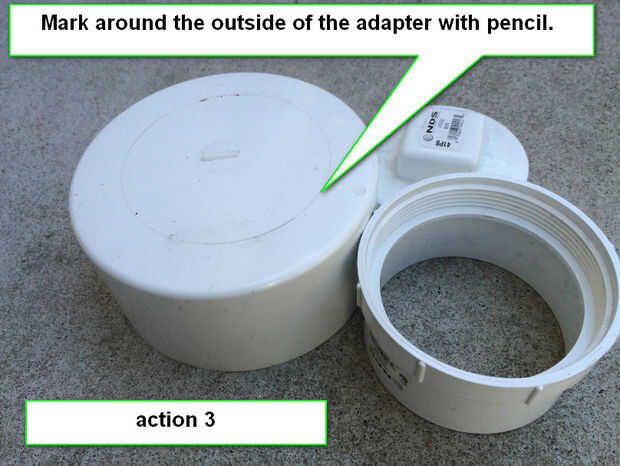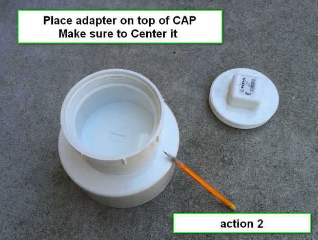 Coloque el adaptador en la parte superior tapa - Asegúrese de centrar. Marque en el exterior del adaptador con lápiz. Como se muestra en acción foto - 2 anterior.