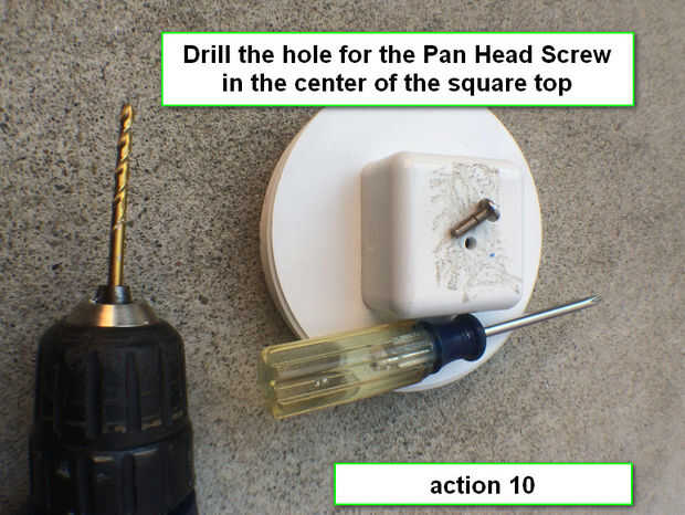 Perfore el agujero para el tornillo de cabeza troncocónica en el centro de la tapa cuadrada. Como se muestra en acción foto - 10 anterior.