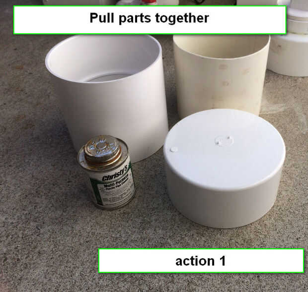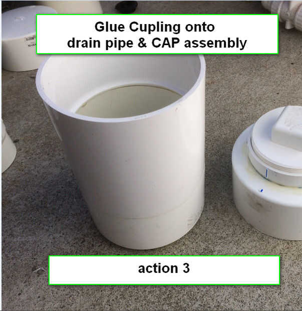 Cupling pegamento en tubo de desagüe de alcantarillado de PVC en montaje de la tapa. Como se muestra en acción foto - 3 anterior
