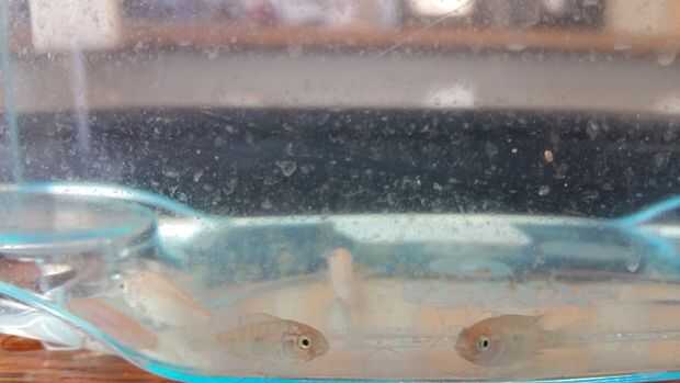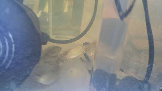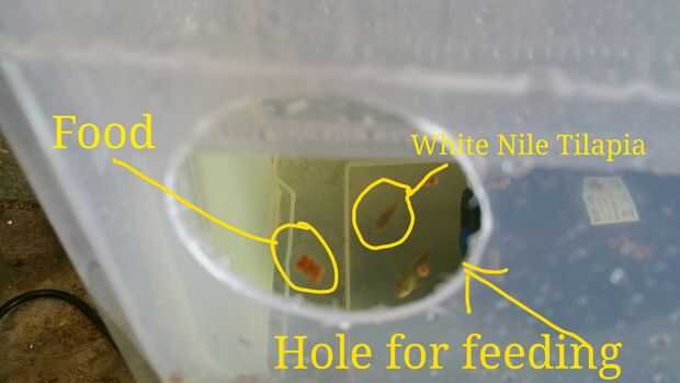Apague la bomba. Coloque la bolsa de pescado en el recipiente de un galón de 27. Dejarlo flotar durante 15 minutos para que la temperatura se puede ajustar a la temperatura del agua de su recipiente. Abra la bolsa y cuidadosamente baje la parte superior de la bolsa, como si se enrolle una manga de la camisa. La bolsa debe flotar en el agua con la tapa abierta. Ahora podemos empezar a aclimatar los peces para el pH del agua. Utilizando un contador de tiempo, añadir 1/2 taza del agua del recipiente cada 5 minutos a Abra la bolsa de peces. Si es un bolso pequeño, use una taza de 1/4. Más lento, mejor. Diferencias repentinas en temperatura y calidad del agua matará a sus peces. (Si usted ignora esta información, puede tener flotadores). Después de 60 minutos, suelte lentamente el pescado en el cubo. Encienda la bomba. (opcional: corte un agujero utilizando el orificio 2" vio en la parte superior de la cubeta de 27 galones, varias pulgadas por encima de la línea de agua para fácil alimentación de tus peces)
