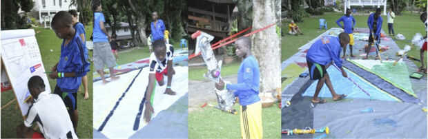 Materiales:Globos x 3Bolsas de plástico x 3Cinta de enmascararExpansión de espumaPantimediasTuberia de riegoRiego se une - ángulo recto x 18, x 1 Cruz, en forma de T-x 2Palillo del resplandor x 2Pelotita de ping pong x 1Bridas x 4Envase de la medicin