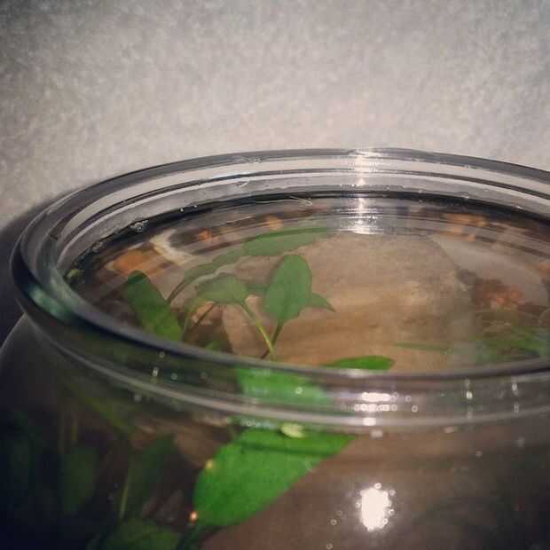 El agua es la parte más importante de tener un pez betta. Usé agua filtrada y declorada, temperatura ambiente. El agua directamente desde el grifo se llena con todo tipo de químicos como cloro o si vives en fluoruro de Oregon. Mejor camino a seguir, en mi opinión, es comprar una jarra de galón de agua. Para este plato de tamaño será bueno para hasta 3 cambios de agua.