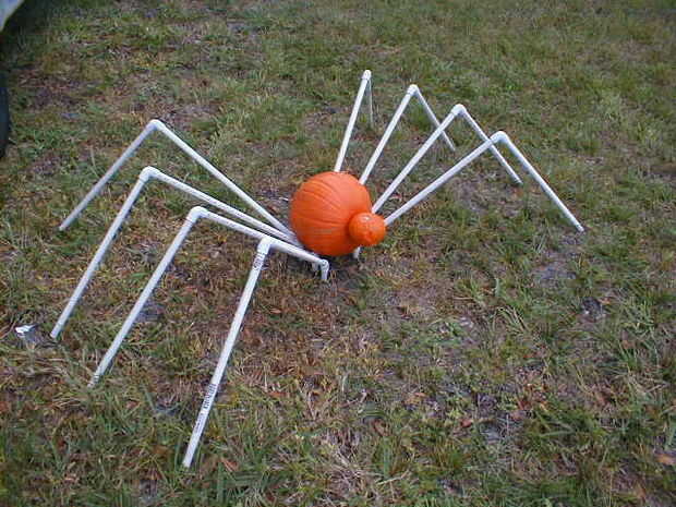 Se puede ver en la foto es assembeled las secciones 6" se empujan en la tierra para apoyar las piernas, la calabaza se encuentra justo en la parte superior, con una calabaza tallada más pequeña usada como jefe.
