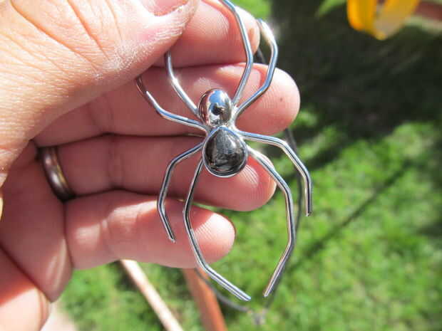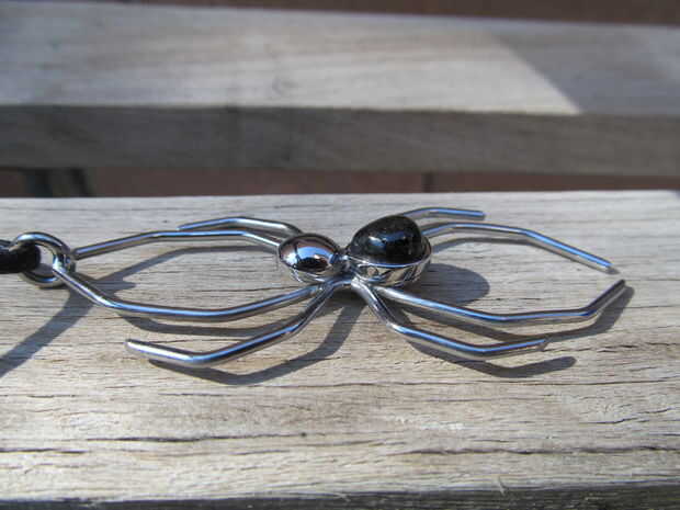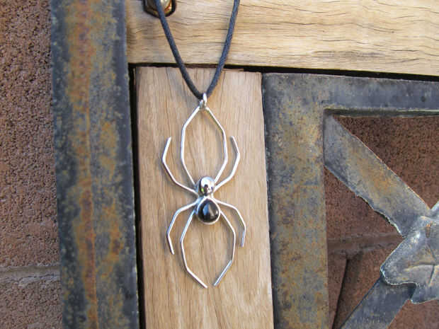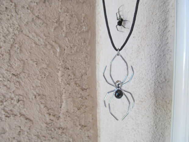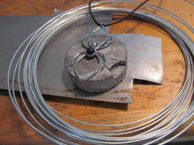 Aquí está mi diseño para un colgante de araña de piedra y alambreHerramientasCuchillas laterales.ronda de alicates.Pequeño archivo plano para rebordear o similar,Materiales1 grande grano de unos 2 cm de tamaño.1 menor grano alrededor de 1 cm de tamañ