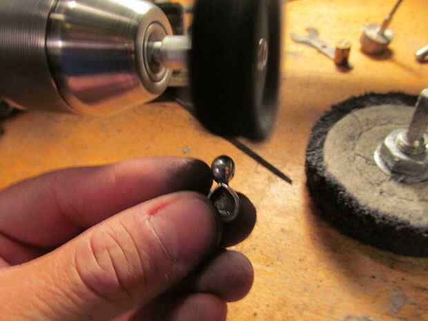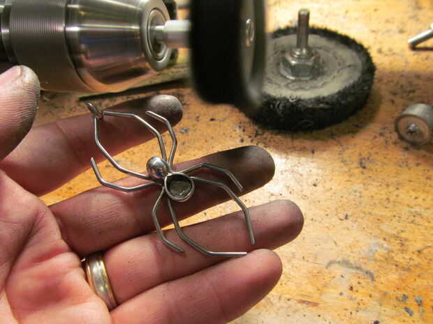 Soldado un anillo del salto en la parte superior. Luego había pulido la araña con papel de grano arena 800 y una rueda que pulimenta. La piedra fue fijada con masilla epoxi.