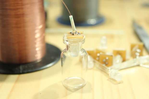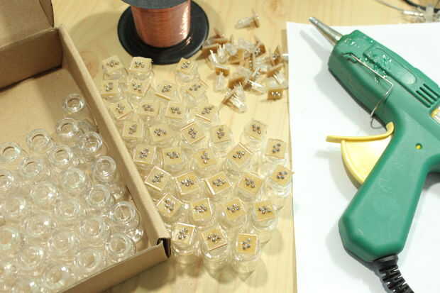 Cortar en cuatro hebras de alambre de cobre para cada LED, tenga cuidado no se rompió la cuerda.
