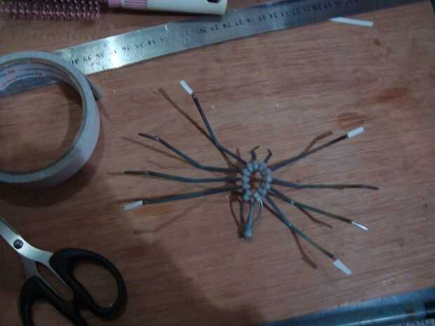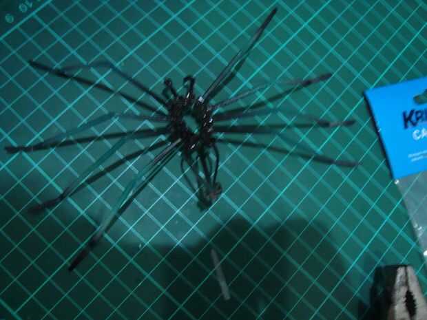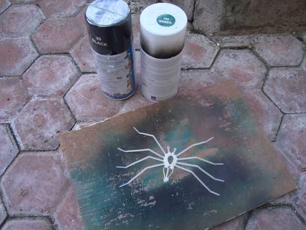 Este paso es opcional se puede utilizar un color bridas y ninguna necesidad de este paso, pero si quieres araña más interesante usted puede hacer esto. usar una pintura en aerosol negra y verde a mi araña del colorante negro para el cuerpo y dedo del pie y verde para el tobillo para que el degradado como se muestra.