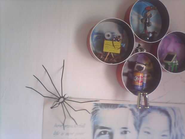 para poder pegar en la pared con la cinta en el dedo del pie. y por último... la araña en las paredes de casa...
