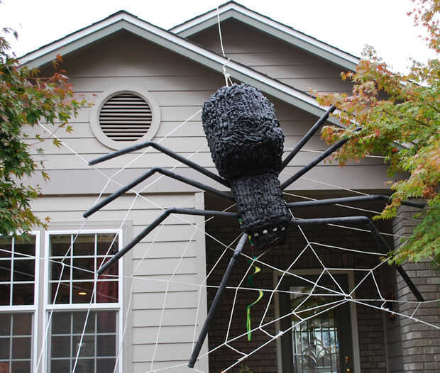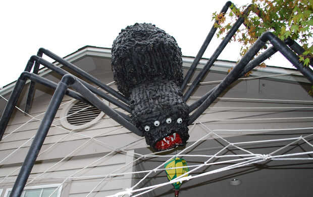 Fotos en esta página son de nuestra araña de "Gran hermano" - tiene segmentos de 4 pies de la pierna, un abdomen de 4 pies y es tan grande como un coche pequeño. Esto le da una idea de cómo se puede modificar el diseño básico en este Instructable quitando el último segmento de la pierna para que se sienta sobre un techo, web, etc..