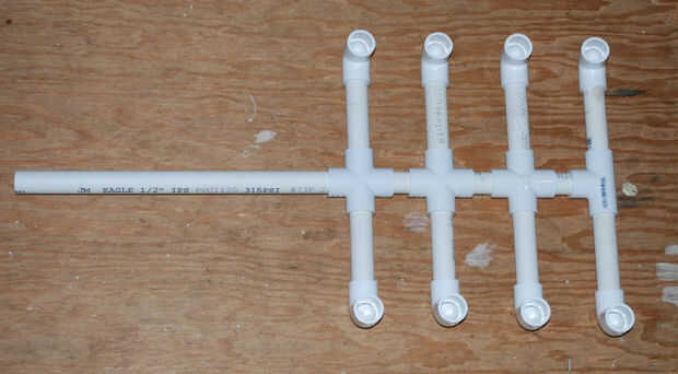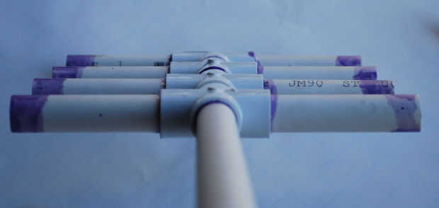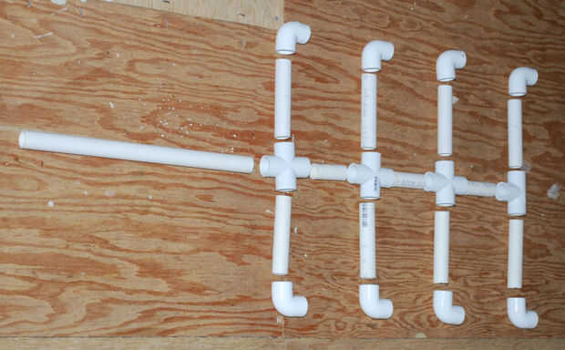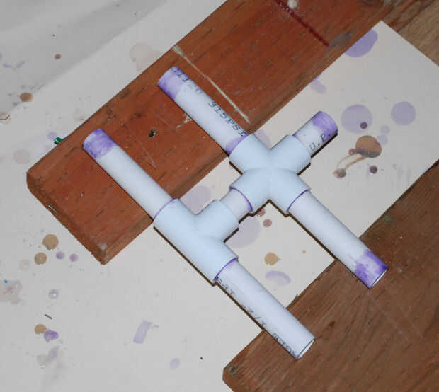 Ahora repita el procedimiento con cada uno de lo PVC de 2 x "Cruz" conexiones - 1 x 5 pulgadas del puntal en lados opuestos de la Cruz y el segmento de 1 x 3 pulgadas en un agujero de centro