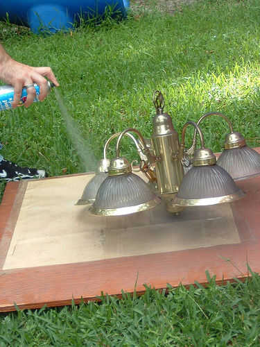 El primer paso fue a la edad de la lámpara con la luz de una capa de pintura en aerosol negro mate.