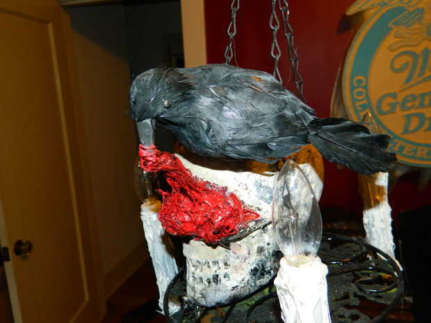 Las aves vienen con pies de plástico. Retirarlos y empujar en 2 pedazos de wite relativamente gruesa en el y luego presione en el cráneo. O simplemente pegarla.