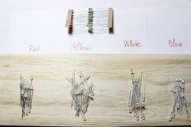El siguiente paso es hacer los iconos de luz tu camino. Usé la fuerte de LEDs de 3mm de luz con muchos colores diferentes, blancos por ejemplo, para Gmail, azul para el nublado, naranja para el sol y la luna...