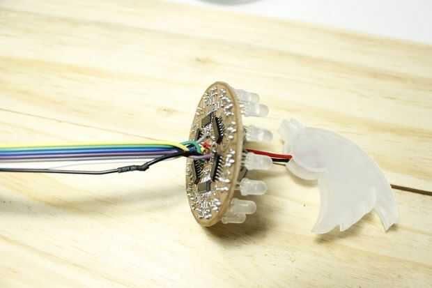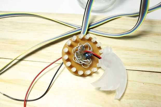 Siguiente paso es soldar dos cables de los iconos en el tablero del LED. Un cable está conectado a 5V, el otro es cable de control.