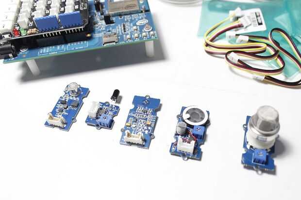 En este proyecto, utilicé el sistema de sensores de grove que fácilmente se conecta y se basa en un estándar. Incluyen sensor de Gas MQ2, sensor de llama, sensor de calidad de aire, sensor de temperatura infrarrojo, altavoz. Puede encontrar más información en la página wiki de Grove.