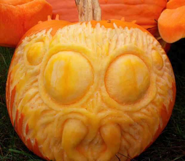 Dibujó las formas y talladas en un poco para un efecto 3-d, luego añadir cierta textura peluda mirando. Yo nunca se rompió a través en la cavidad de la calabaza, por lo que la cabeza debe tener una buena vida útil larga antes de que bruto.
