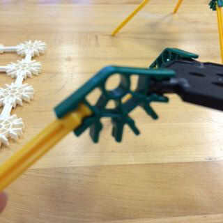 Comience por colocar una pata de araña en el paso anterior en un conector en la placa negra. Hacer la fijación colocando la varilla negra, que viene de la placa negra, en el espacio desocupado en el conector verde más lejos del borde. Repita este paso cuatro veces, para que la placa tiene cuatro patas de araña. Luego, tomar los cuatro últimos restantes patas de araña y repita este proceso en la otra placa negra.