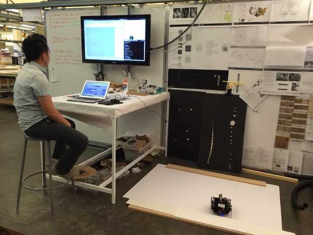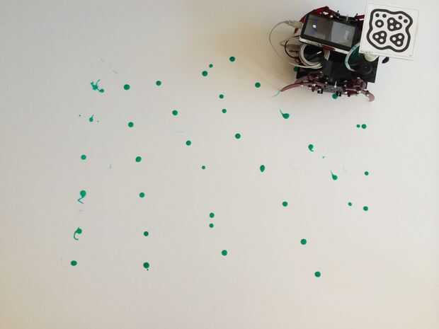 Para seguir el robot de forma inalámbrica, primero establecer un fondo blanco (en el suelo) y centrado en la webcam tres pies por encima de este. Analizando sólo el mecanismo de caída en primer lugar, pudimos ver que era capaz de seguir con precisión una materia camino y gota de 5 mm de cualquier punto específico. No dude en utilizar el archivo adjunto saltamontes para comenzar sus propias pruebas. Tenga en cuenta que cualquier patrón de entrada (para que el bot a mover) debe ser una polilínea con un extremo en cada lugar que el bot tiene que dejar. Hay varios caminos de ejemplo en el archivo.