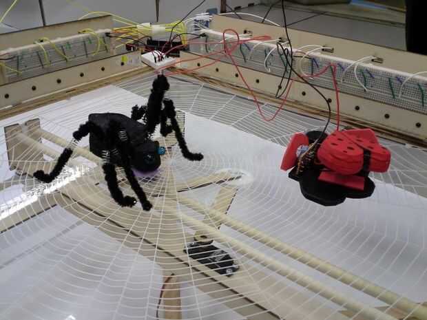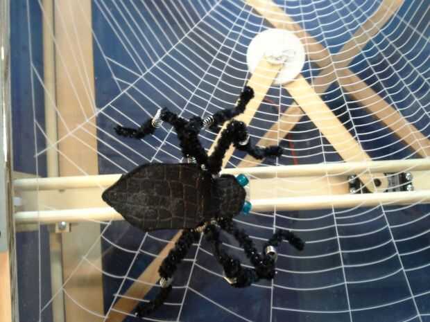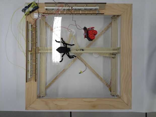 La historia de nuestro autómata de araña insecto-catching va como esto: una araña gigante del mal reside en una red grande. Un día una señora desafortunado bug se retiene en la web y la araña miedosa lanza en él.