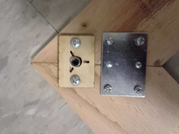 Soportes en L se pueden utilizar en vez de reparar las placas. Nuestro diseño original llamó para juntas a tope en lugar de las juntas de inglete, para que los soportes en L habría sido menos adecuados.