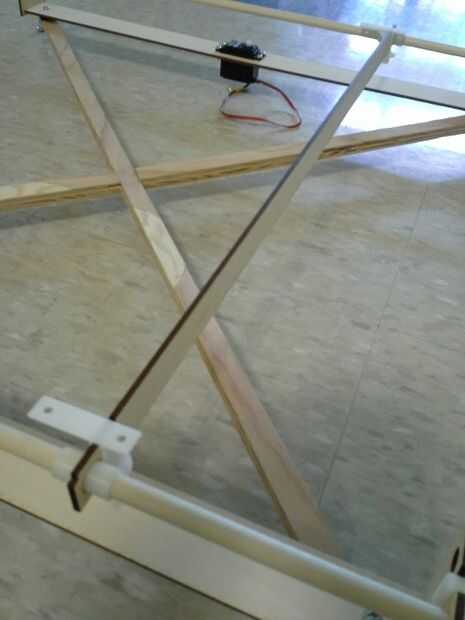 Los carriles ellos mismos son tacos de madera, lijadas suaves para reducir la fricción dentro de la manga deslizante. Originalmente habíamos planeado usar tubos de metal, pero cambió a tacos porque eran significativamente menos costosos.