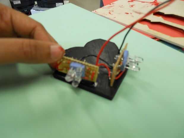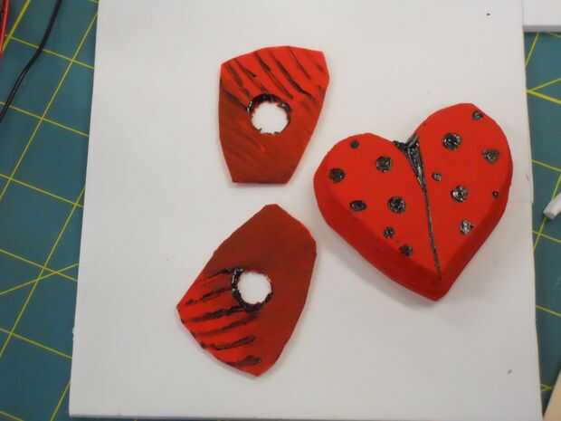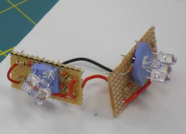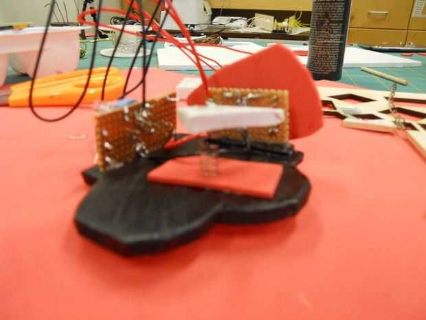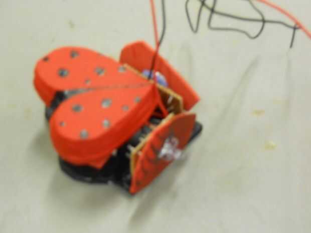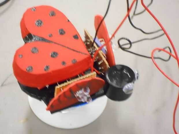 2) la pieza soldada debe colocarse a 90 grados para que cada uno enfrenta a uno de los dos ejes. Las alas de la señora bug llevó a los emisores.