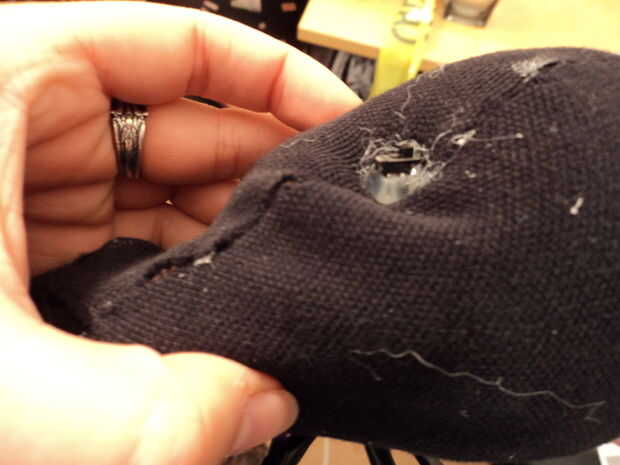 Nuestro vino hacia fuera la parte posteriora; tuyo puede ir a cualquier parte que lo pones. Pegamento caliente alrededor de él para que el relleno no se muestra.
