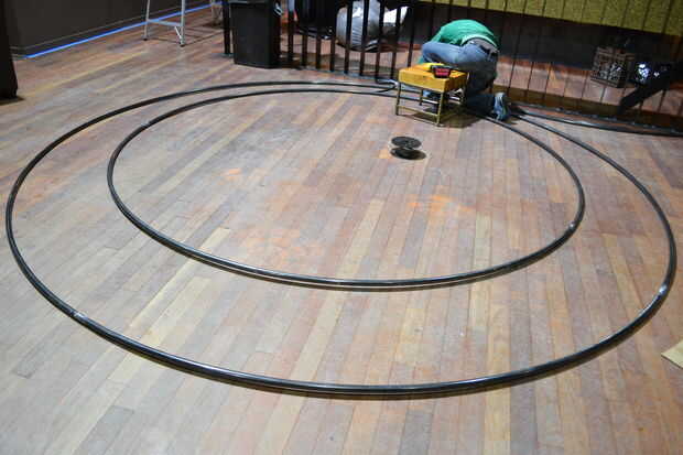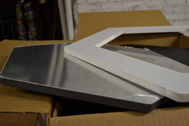 Step 2: Get the materials. Trabajando a gran escala, hemos tenido todas nuestras piezas cortadas de un producto de base de espuma, una compañía que CNC Routing. Nuestro anillo exterior fue Marcos hexágono grande, nuestro anillo interior hexágonos de espejo más pequeño, sólido, enfrentado con un agujero en el centro de una pequeña bombilla, también preparado por la empresa de distribución. Para un accesorio más simple en un presupuesto menor, esto podría hacerse mucho más pequeña, de un material diferente, o solamente una capa gruesa. El otro componente principal es un anillo grande para sujetar las formas para. Teníamos un tubo doblado piezas de hacer empresa para nosotros y un soldador ponerlos juntos. Una más pequeña, menos pesada versión de esto podría hacerse con aluminio, fibra de vidrio o incluso un Hula-Hoop.