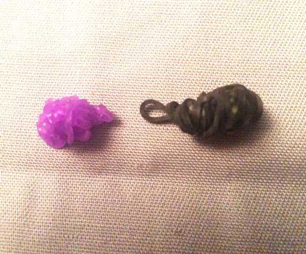 1. para el cuerpo necesita un poco más bandas de goma en el esqueleto de la cabeza. Empiezo a rodar uno de los extremos del esqueleto en una bola y la banda de goma cada último, utilicé lazo 2 veces alrededor de todo el asunto para asegurarlo. Hice lo mismo para la cabeza púrpura.