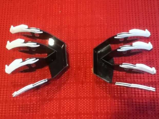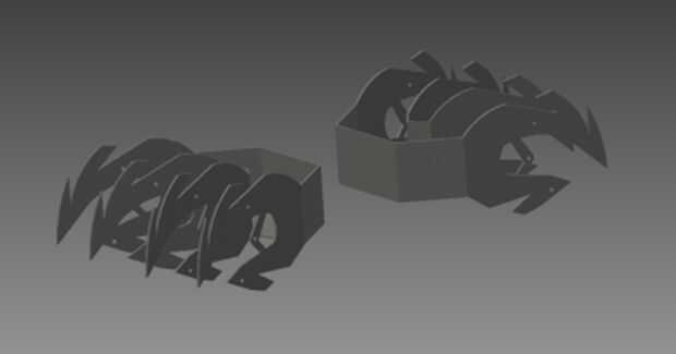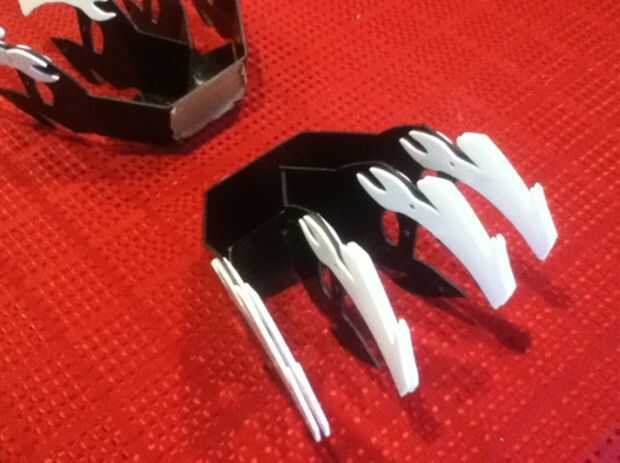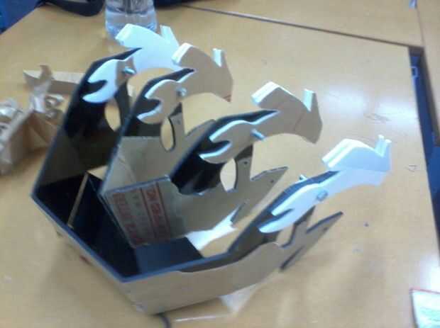 Para que sea imprimí una red 2D de cada mitad y había pegado sobre una hoja grande de plástico acrílico de 3 mm. Entonces usando una sierra a que corte el contorno y también unas ranuras que permiten las secciones medianas a en la ranura (ver fotos) ante mano presentación apagado cualquier exceso púas plástico y perforar los agujeros para los diferentes componentes conectar. (Este paso será mucho más rápido si usted tiene algún tipo de laser o CNC de corte que se puede utilizar en lugar de hacerlo manualmente con la mano). Después de esto que calienta las áreas que necesitan flexión usando un doblador de plástico y doblaron el acrílico a la forma deseada utilizando bloques de madera guías corta al ángulo correcto. Una vez hecho esto fue todo lo que necesitaba era pegar las piezas medianas en lugar y se completó el marco.