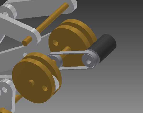 Mientras que no un piñón, este concepto exhibe muchas características similares, por lo tanto el nombre comparativo. Mi idea no malla en una banda para trabajar como un piñón real, pero más bien usa cinturón dos menos piñones se que interactuar y hacer girar el cigüeñal en un ángulo de 90 grados. Esto puede verse como un concepto similar a un engranaje cónico. La razón por qué no usar un engranaje cónico para este concepto es porque son caros y comparativamente me llevaría relativamente poco esfuerzo para construir esta idea yo la misma norma como un objeto de compra. Sin embargo, en definitiva, es un diseño complejo, propenso a interferencia si las mediciones no son perfectas y en última instancia, no de una manera eficaz de transferencia de momentum.