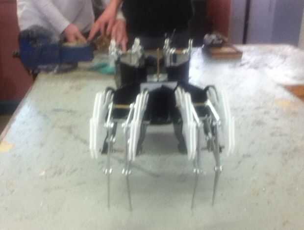 Ahora que la estructura fue armada comencé a colocar las piezas de la pierna juntos a sus pivotes y luego adjuntarlas a las cajas de engranajes y motores eléctricos. Los componentes de la pierna fueron sujeto fácilmente con tuercas de seguridad y luego sujeto en pares a 4 cajas individuales