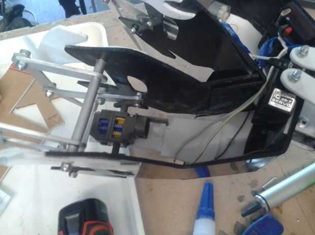 Primero de todo había montado todo mi electrónica e hice todo mi cableado (fotos más claros de esto pueden verse en el último paso). Por un lado tenía el interruptor, variador y batería y en el otro el servo, antena y receptor.