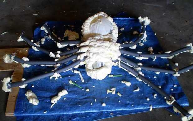 Después de curar he volteado la araña y utiliza otro puede asegurar las patas y partes de cuerpo completo lo mejor que pude. No hice la parte de abajo entera porque nadie debe ser capaz de ver una vez que la araña está terminada y montada.